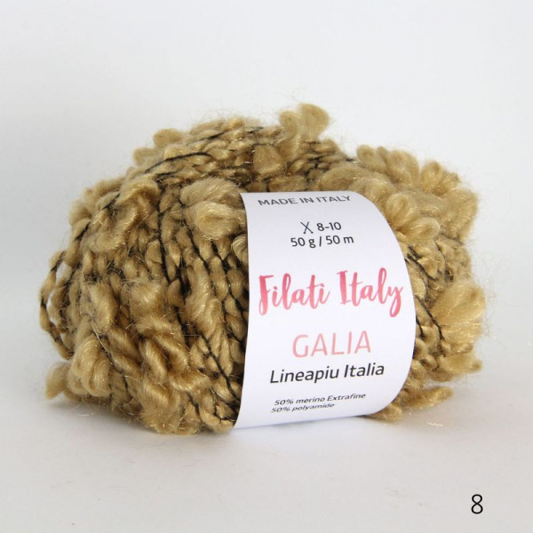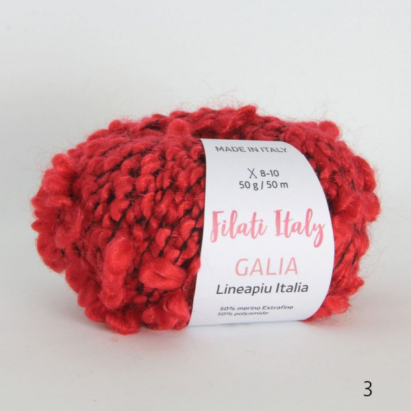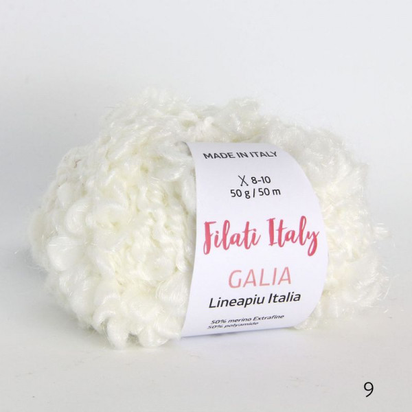 Буклированная фантазийная полушерсть высокого качества. Отличительная особенность – присутствие в составе особо тонкой мериносовой шерсти Extrafine (тонина – 17 мкм!) и нейлона. Эффект – не только мягкость, объем, удобство в вязании и уходе, но и формоустойчивость, необходимая для полушерсти.
