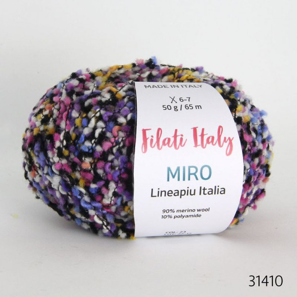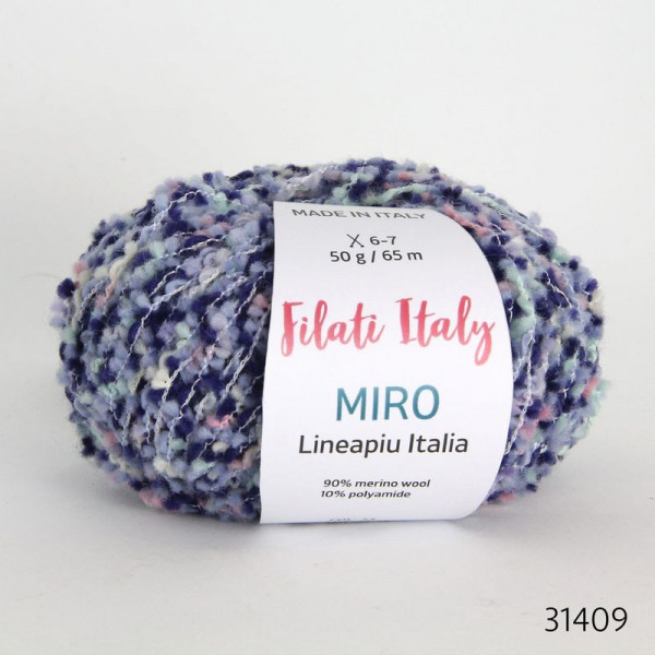 Внешний вид довольно необычный. Разноцветные кусочки мелко нарезанной пряжи, как будто нанизаны, а на самом деле прошиты тонкой нейлоновой нитью. Окраска нерегулярная в стиле «шине». В полотне это выглядит как россыпь мелких пушинок или пестрых конфетти. Отличительная особенность – присутствие в составе особо тонкой мериносовой шерсти Extrafine (тонина – 17 мкм!). Эффект – мягкость, объем, тепло, уют, удобство в вязании и уходе.