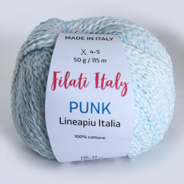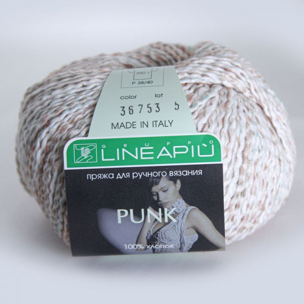 Внешний вид: хлопковая ровница, обкрученная тончайшей нитью. Окраска нерегулярная, наносится вручную по эскизу. В полотне это выглядит как штрихи цветной акварели по более светлому фону. Достоинства пряжи – интересный рельеф, объем и легкость одновременно, изысканная цветовая палитра, удобство в вязании.